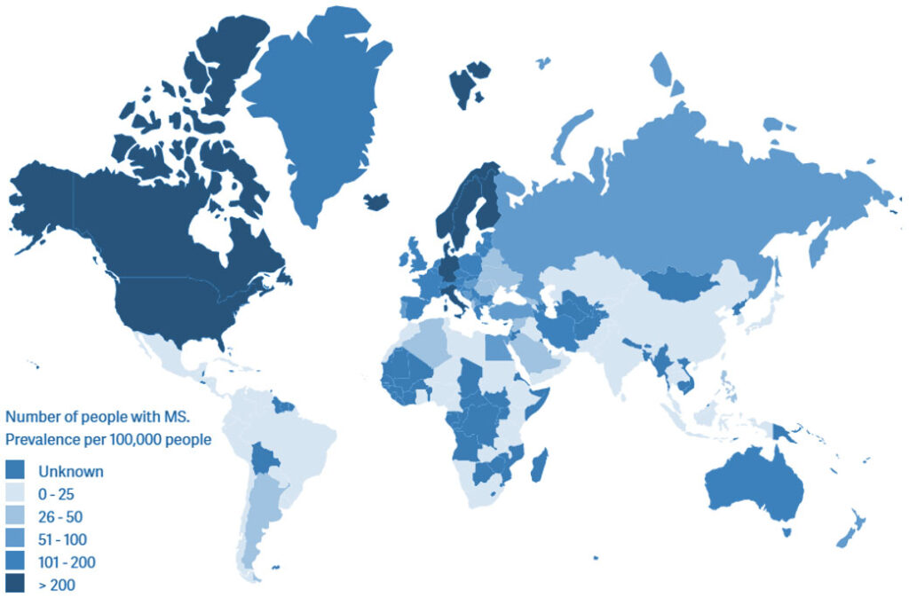 Die Häufigkeit der Multiplen Sklerose variiert weltweit stark und nimmt in der Regel mit zunehmendem Breitengrad zu; nahe am Äquator ist sie am niedrigsten. Als eine mögliche Erklärung werden Unterschiede im Vitamin-D-Spiegel durch unterschiedliche UV-Strahlung diskutiert.